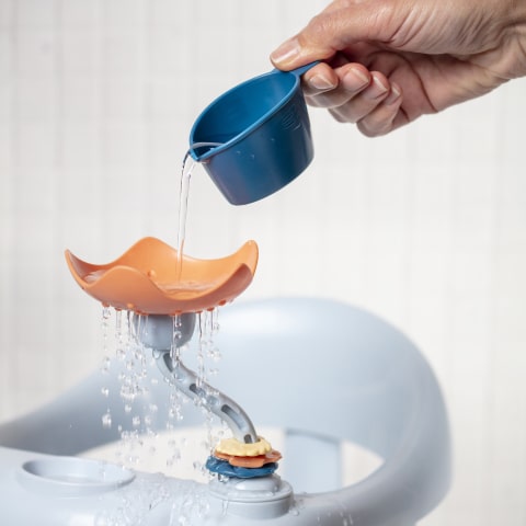 Avec son gobelet poisson, son moulin à eau en forme de soleil, sa passoire étoile de mer et ses anneaux coquillages, le plateau d'activités amuse votre tout-petit à chaque bain.