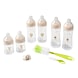 Al je benodigdheden voor flesvoeding in één set, inclusief 6 flessen, een speen en een 2-in-1-flessenborstel.