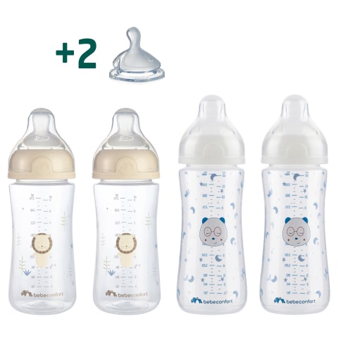 Met twee 270 ml flessen, twee 360 ml flessen en drie speenmaten, heb je de juiste benodigdheden in huis voor elke voedingsfase.