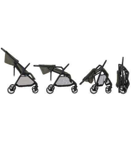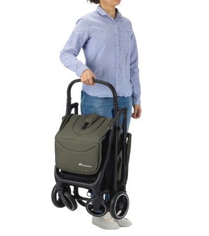 Klap je kinderwagen automatisch in tot een compact, ruimtebesparend formaat dat rechtop blijft staan.